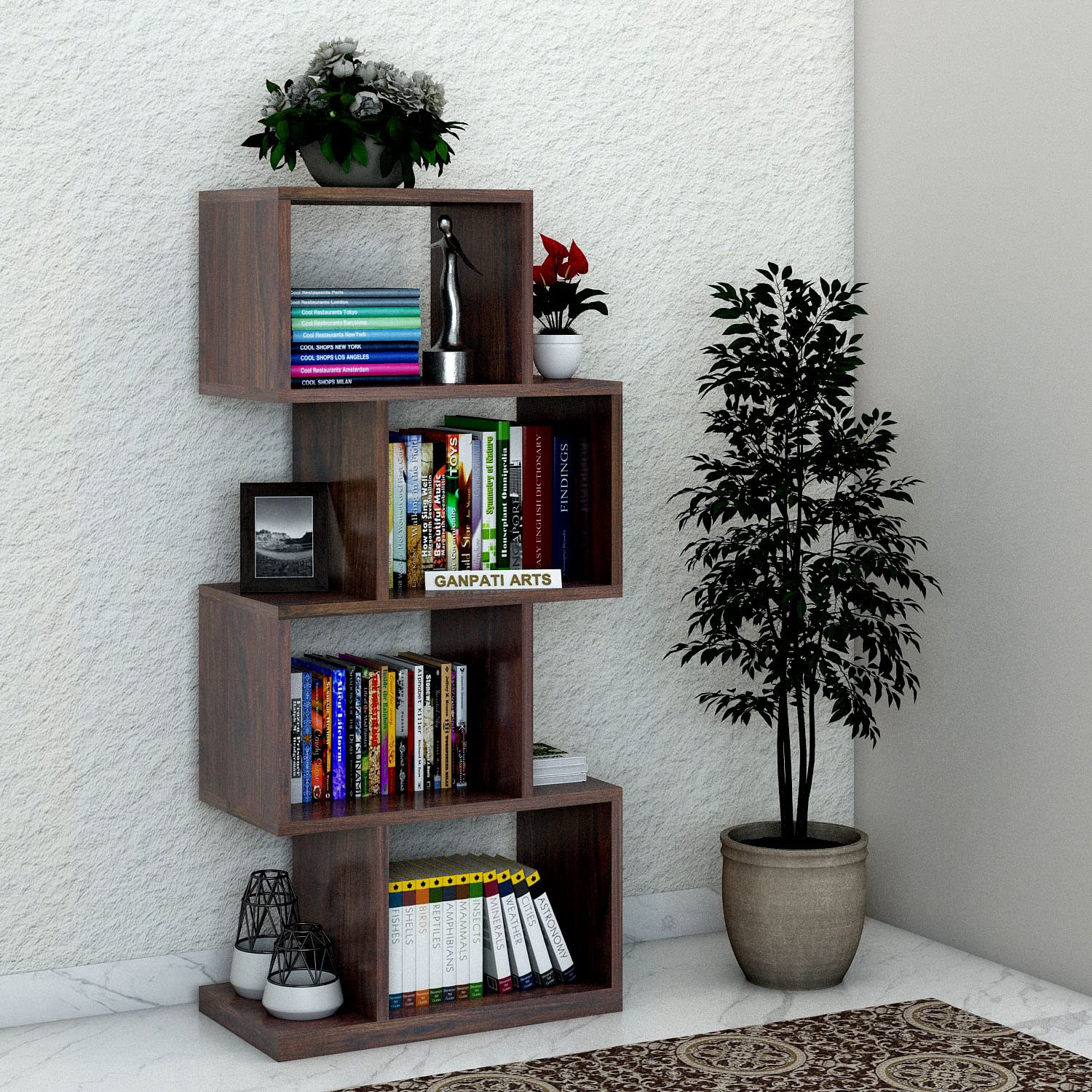 Ganpati Arts Sheesham Wood Book Shelf for Living Room (Walnut Finish)