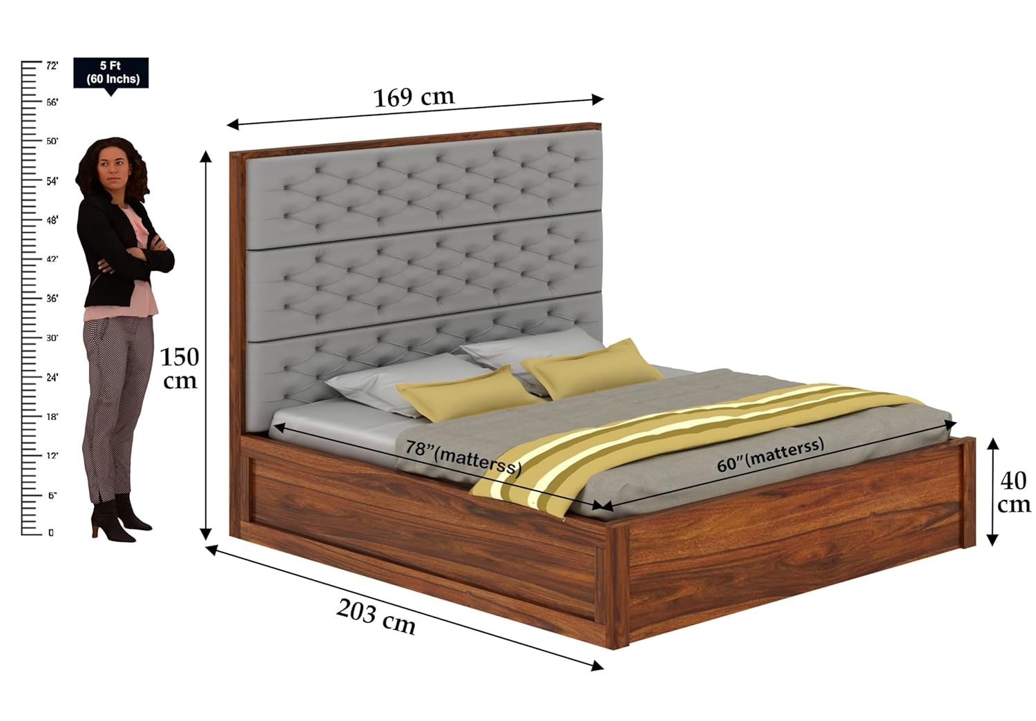 This Ganpati Arts Sheesham Wood High Back Burj Queen Size Bed with Box Storage is a beautiful combination of classic design, everyday comfort, and practical storage, crafted for modern Indian homes. Made from premium solid Sheesham wood, this wooden double bed offers excellent durability, strength, and a smooth long-lasting finish. The natural finish enhances the rich wood grain, bringing warmth and elegance to your bedroom space.