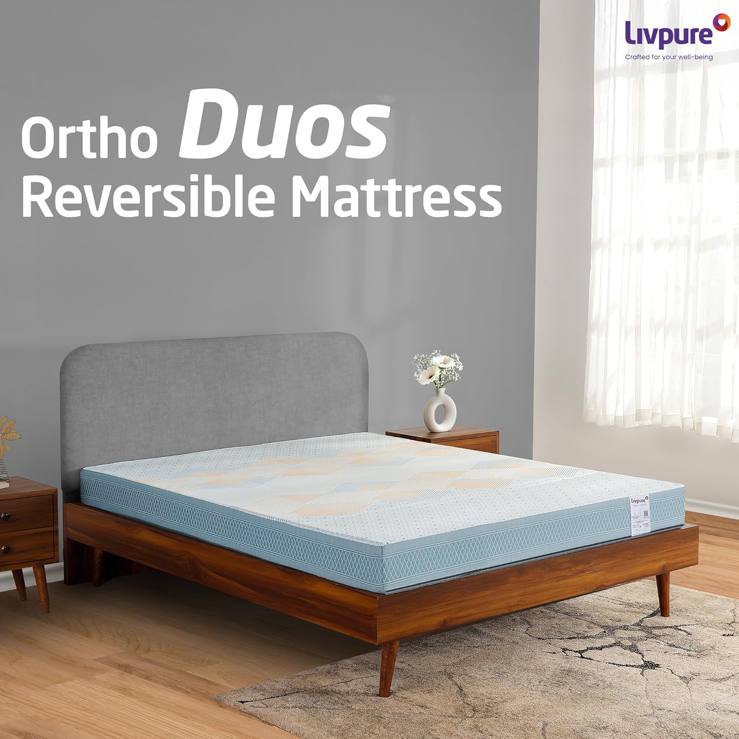 A thoughtfully designed king size Livpure mattress can change the way you sleep, and the Livpure Smart Ortho DUOS-X is built to deliver balanced comfort with long-term support. Crafted as an hr foam mattress with reversible construction, it allows you to choose the sleep feel that suits you best, making it ideal for Indian families with changing comfort preferences.