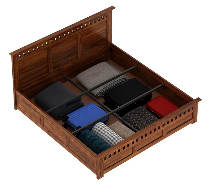 The Ganpati Arts Modern Wooden Bed with storage is thoughtfully designed to bring together elegance, durability, and everyday convenience for contemporary homes. Crafted from premium Sheesham wood, this beautifully engineered piece showcases exquisite natural grain patterns that instantly enrich your bedroom decor. Ideal for anyone who values dependable craftsmanship, this bed offers exceptional strength and long-term reliability while maintaining a refined modern appeal. Its smooth polished finish highlights the richness of Sheesham wood, giving your room a warm yet stylish ambiance that only a high‑quality wooden bed can offer.