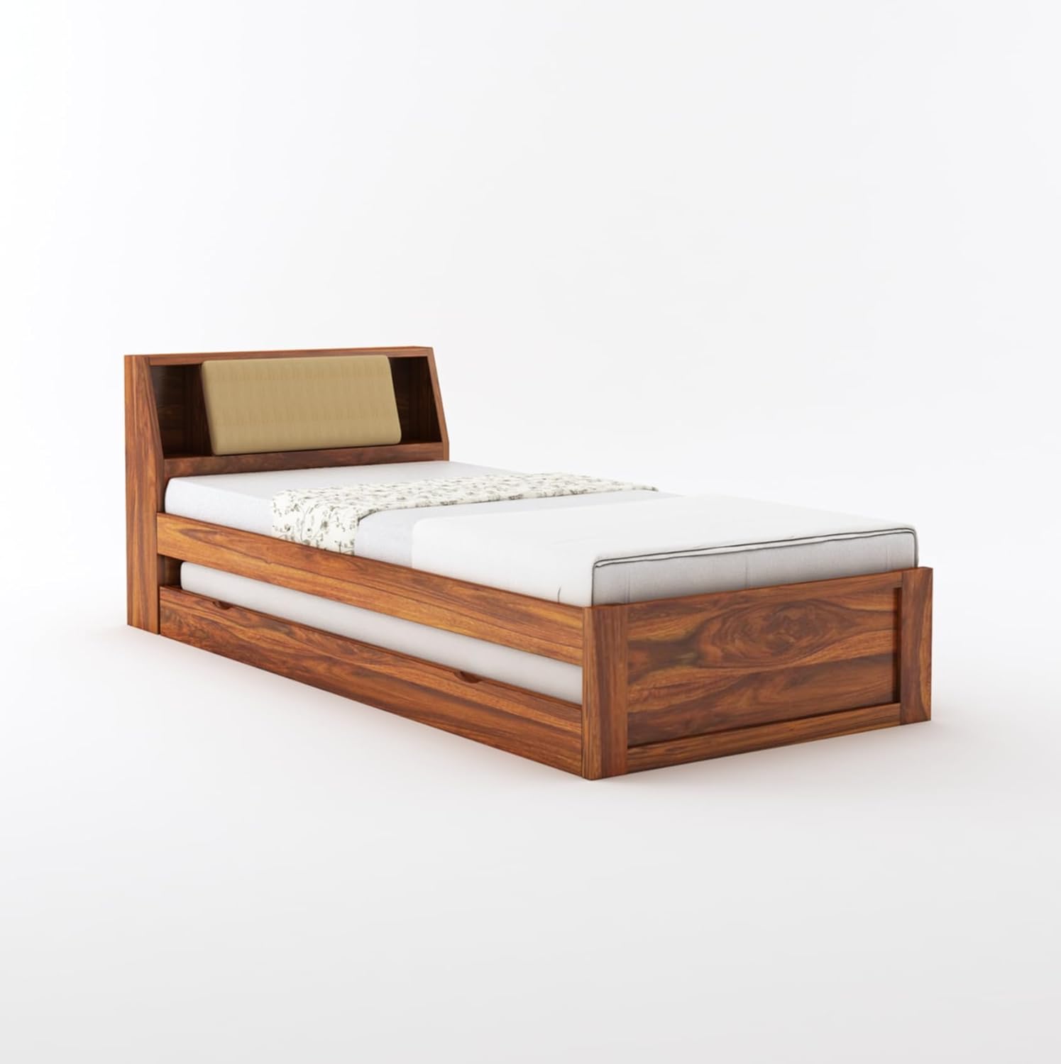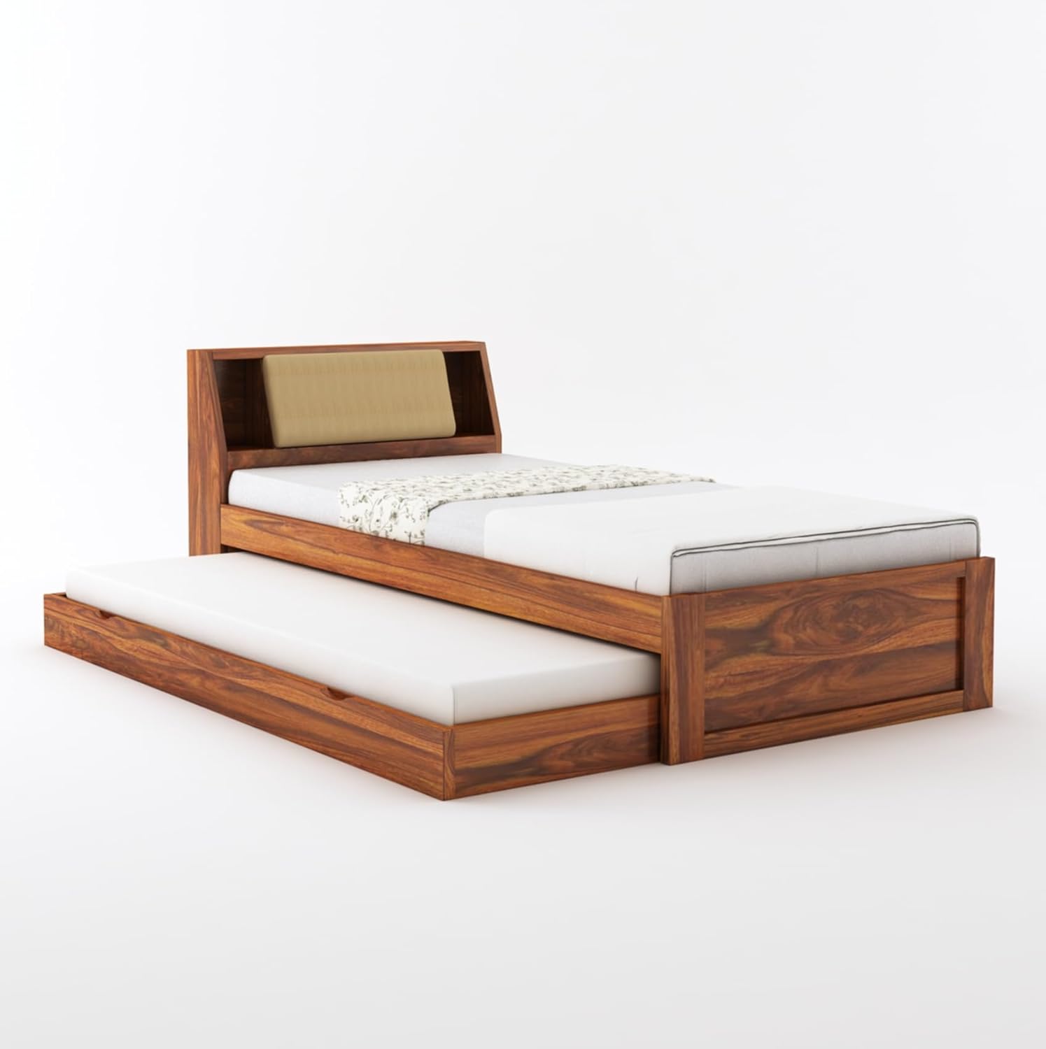 Explore this sheesham wood single bed with trundle by Ganpati Arts. Premium build, natural finish, durable design, and ideal for compact bedrooms.