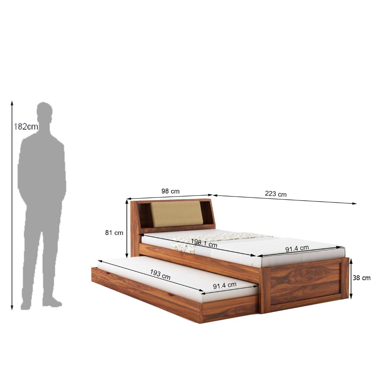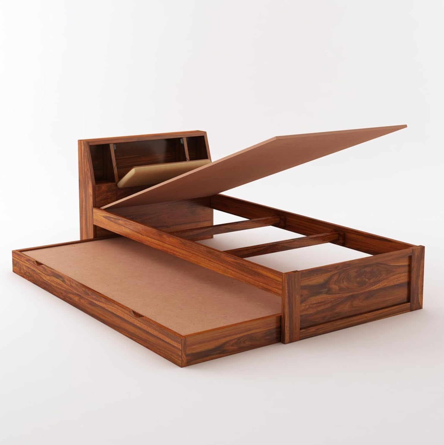 Premium Sheesham Wood Single Bed with Trundle | Ganpati Arts