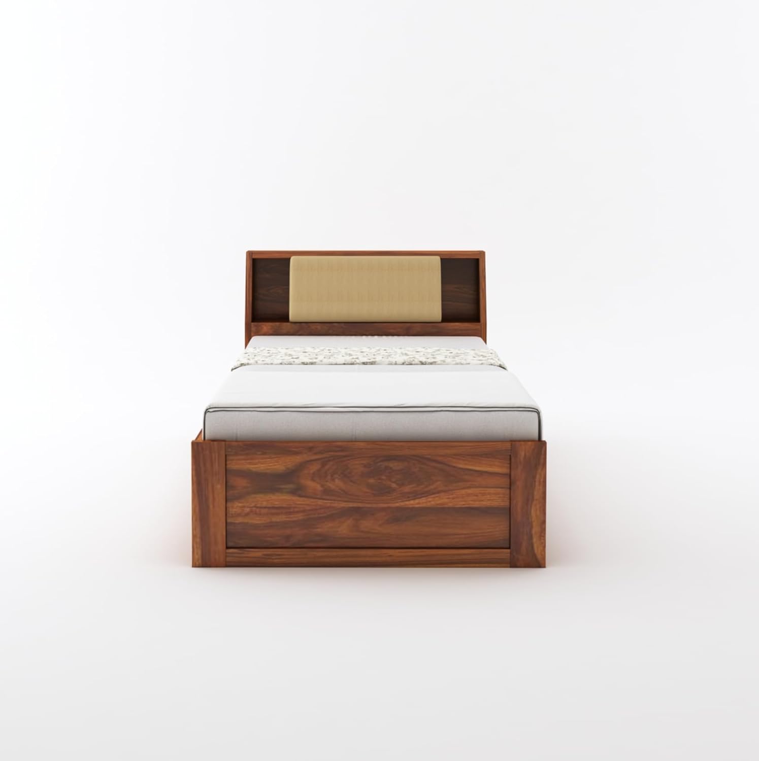 Constructed using high-quality sheesham wood, known for its strength and termite-resistant properties, this bed ensures long-term durability and stable support. The natural grain patterns of sheesham enhance the aesthetic appeal, while the finely polished surface gives the bed a premium, handcrafted look. It easily complements other bedroom essentials like a wooden wardrobe, bedside table, dressing table, or chest of drawers, ensuring a cohesive interior style. Its robust structure supports both single bed mattress setups, making it suitable for adults, teens, or kids’ bedrooms.