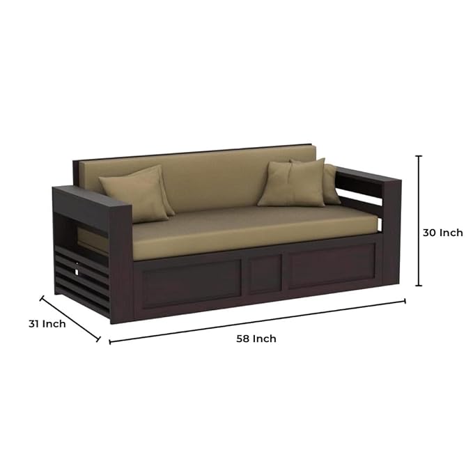 This versatile 3 seater sofa easily transforms into a comfortable bed, providing a convenient solution for homes that need additional sleeping space without compromising on aesthetics. The pull-out design glides smoothly, ensuring quick and hassle-free conversion. Perfect for urban homes, guest rooms or studio apartments, it replaces the need for a bulky wooden bed or single bed mattress setup. The rich sheesham wood structure adds solidity, while its 400 kg weight capacity ensures stability and longevity.