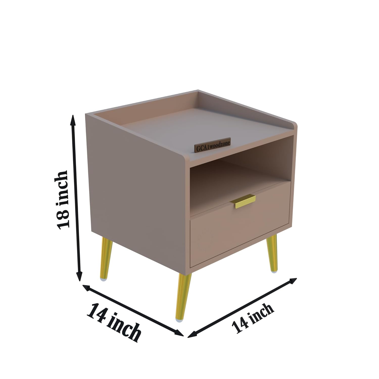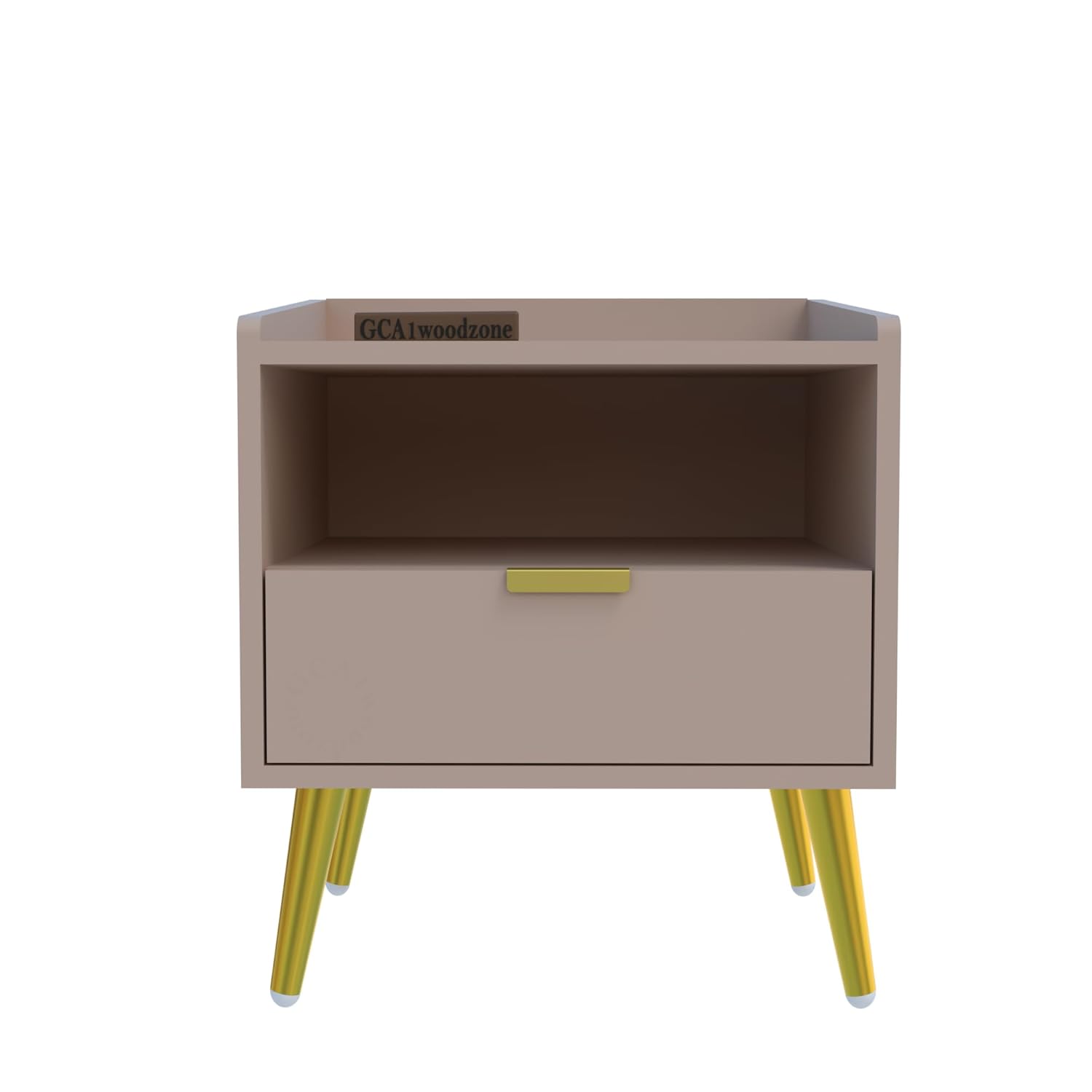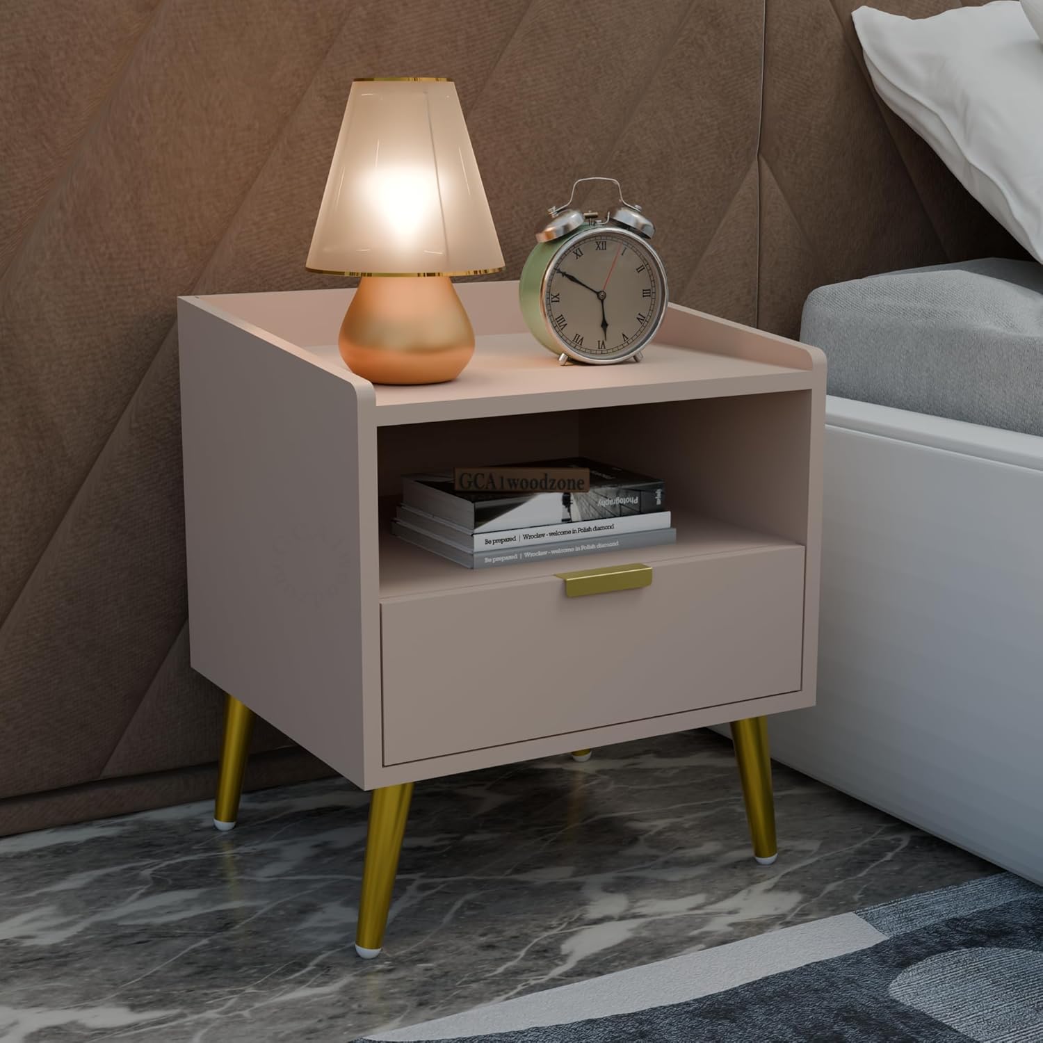 Wooden Bedside Table for Bedroom | Wooden Bed Side Nightstand Lamp Table with 1 Drawers & Open Shelf Storage for Home & Hotels | HDMR Premium Wood & Iron Legs, Light Beige