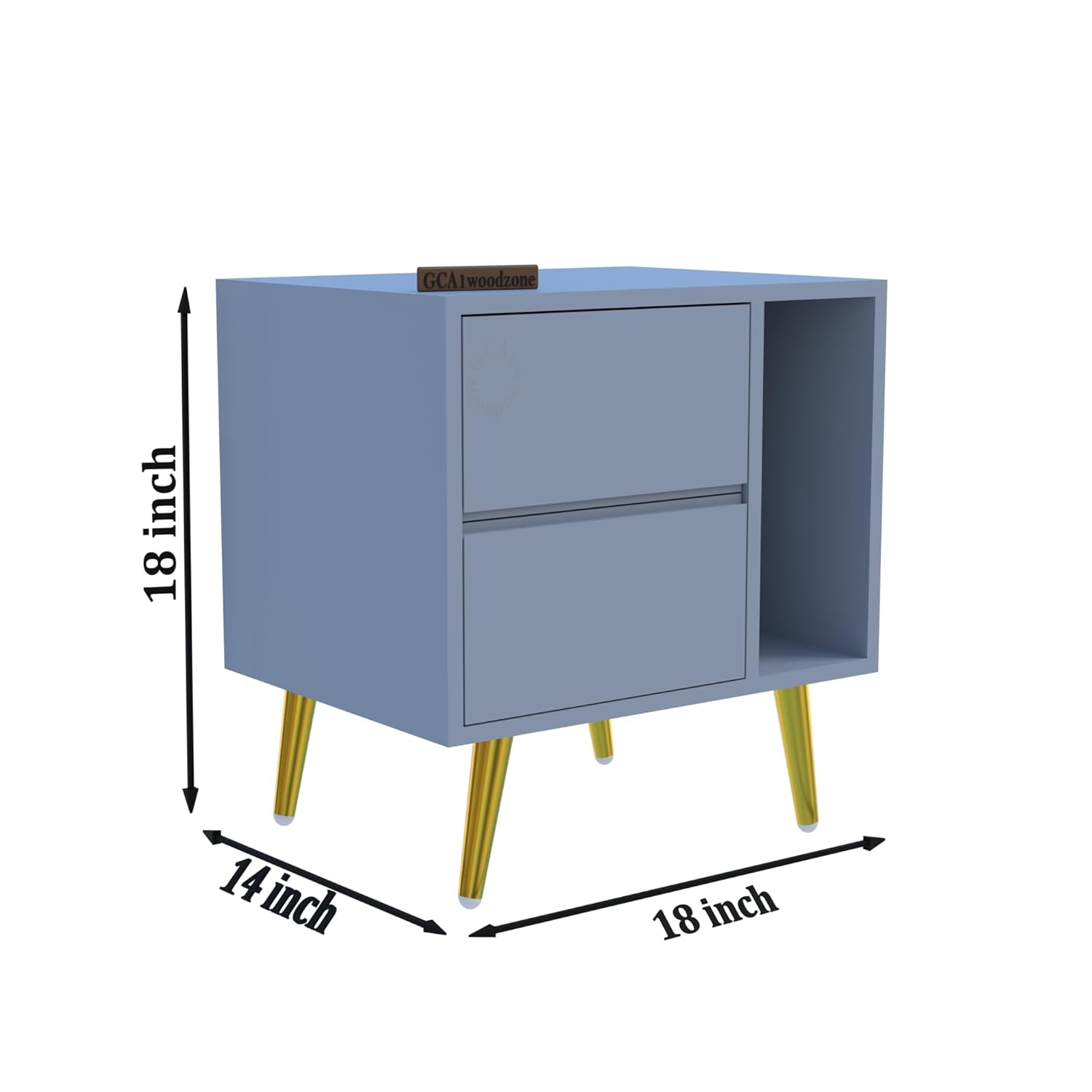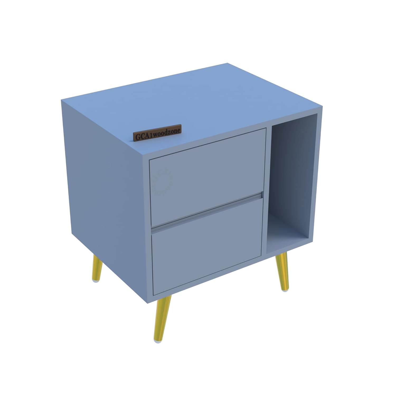 Wooden Bedside Table for Bedroom | Wooden Bed Side Nightstand Lamp Table with 2 Drawers & Open Shelf Storage for Home & Hotels |HDMR Premium Wood & Iron Legs,Matte Slate Blue (Pack of 2)