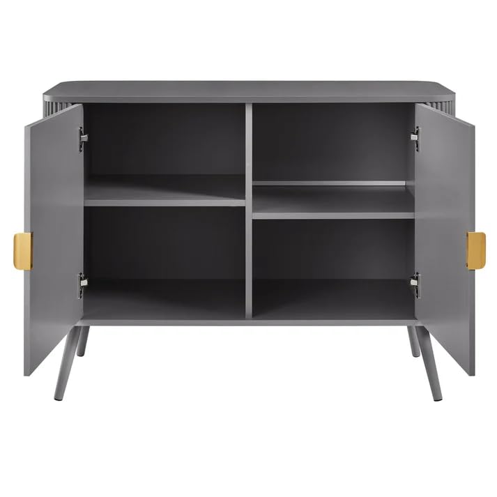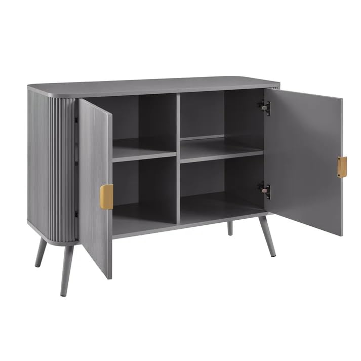 Wooden Sideboard Cabinet for Living Room | Side Board Crockery Cabinet with 2 Doors Storage for Dining, Drawing and Home Office | HDMR Premium Wood & Iron, Light Grey