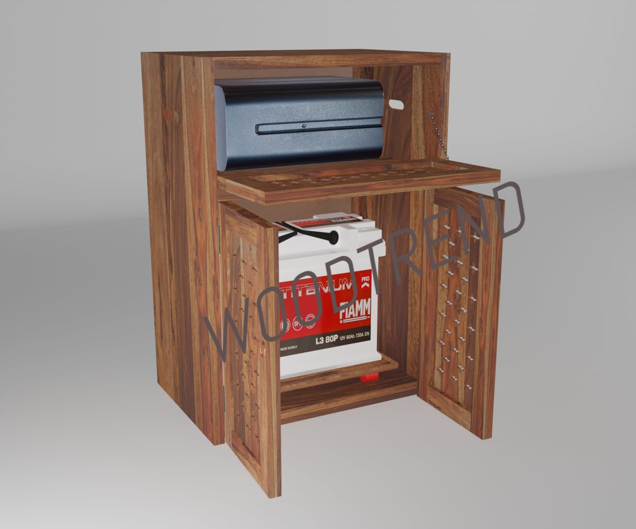 WOODTREND Solid Sheesham Wood Inverter Battery Cabinet | Battery Trolley